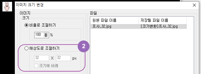 (2) 사이즈를 32x32 픽셀로 변경 저장하세요.